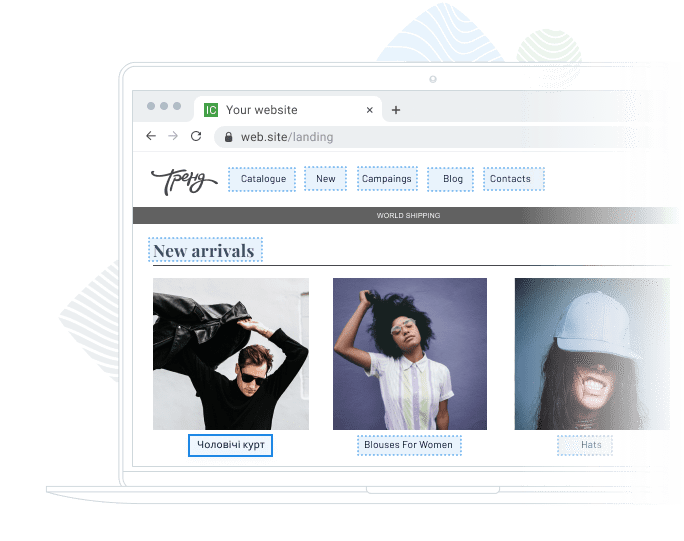 Quanto mais contexto forneceres aos tradutores, maior será a qualidade e relevância da tradução. A visão interativa do Crowdin sobre a tua aplicação da web ajuda as pessoas a pré-visualizar e ajustar as suas traduções em tempo real.