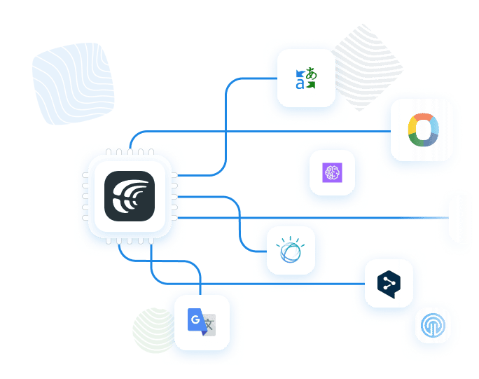 Configura as integrações com o teu repositório, centro de ajuda, e outros sempre. O conteúdo de origem está sempre atualizado para os tradutores e o conteúdo traduzido é, automaticamente, enviado de volta.